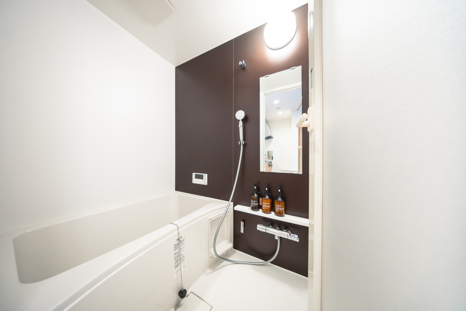 浴槽もついて広々と使っていただけるバスルームです。
