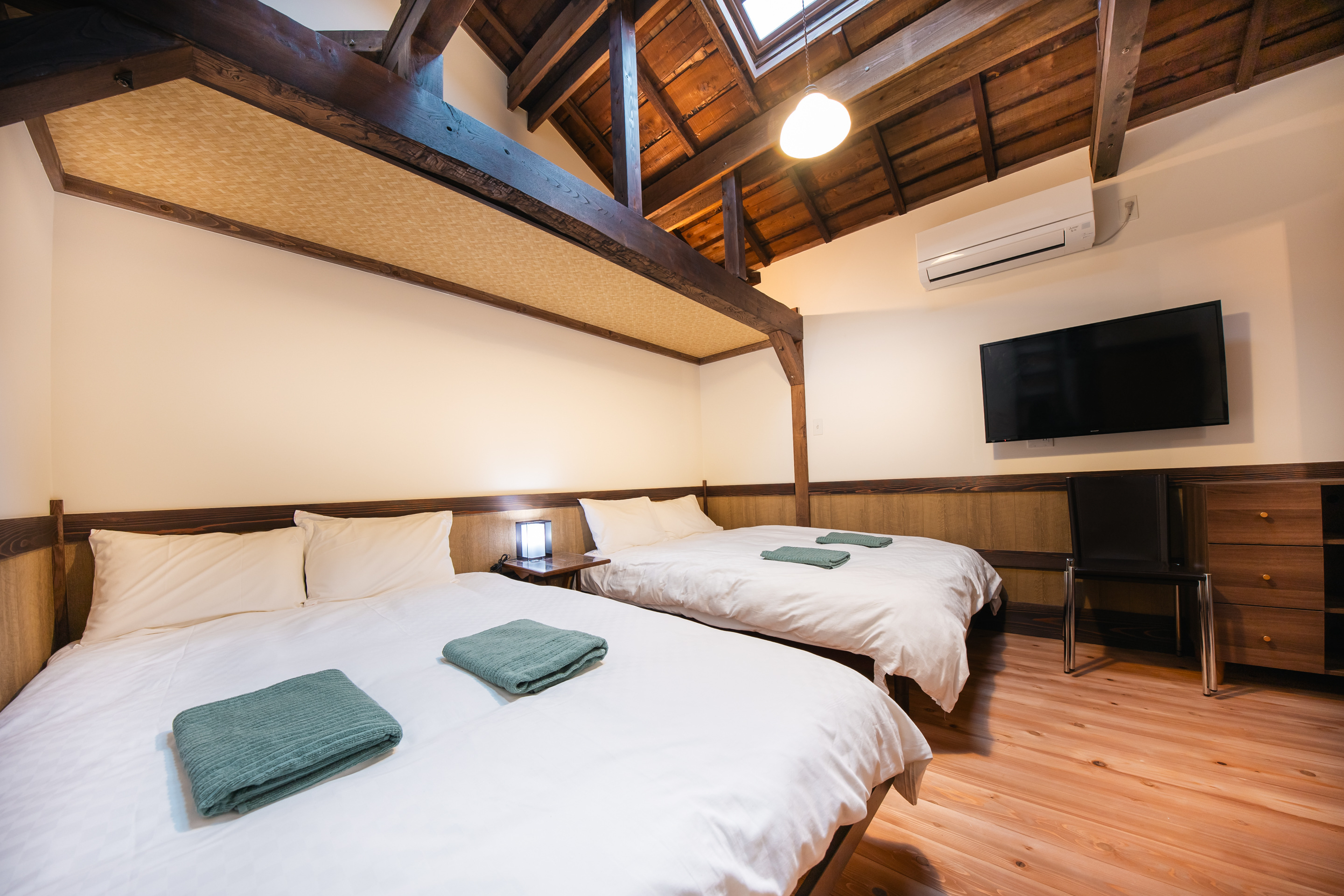 - 最大8名様までご宿泊可能な一棟貸切の民泊です。寝室が3部屋、リビングダイニングが1部屋あり、広々とした空間でおくつろぎいただけます。全室エアコン完備、テレビ、洗濯機などを設置しており、短期・長期どちらの滞在にも快適です。